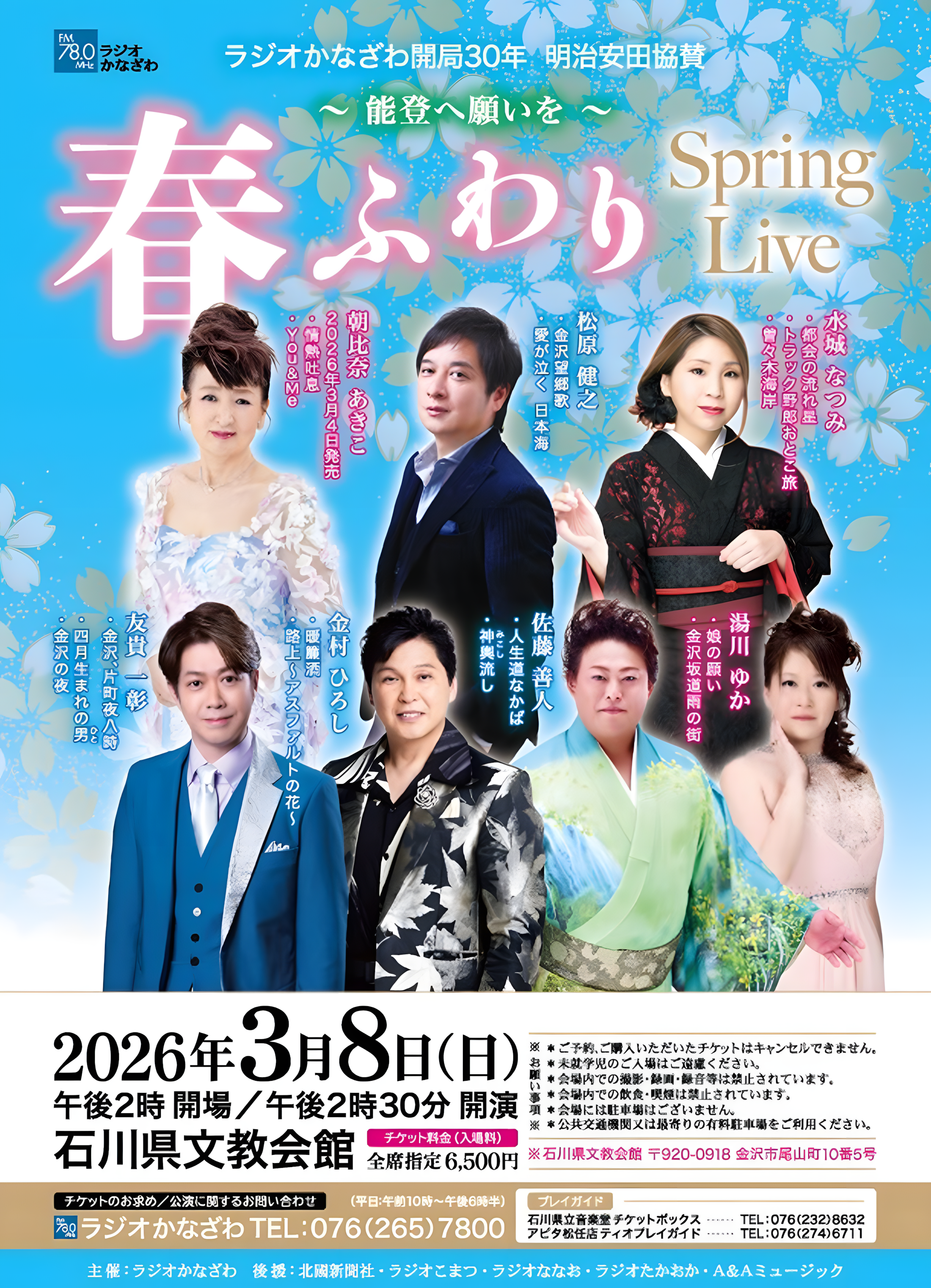 春ふわり Spring Live 3月8日(日)ラジオかなざわ開局30年 明治安田協賛
